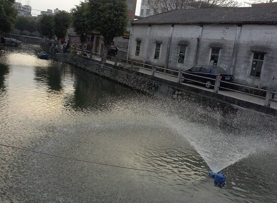 深圳市大治生光公司憑借在廢水治理行業(yè)摸爬滾打二十年的經(jīng)驗,根據(jù)河涌內(nèi)工業(yè)廢水和生活污水混雜的情況,采用“立體組合拳治理法”治理河涌水。首先,采用手段進(jìn)行底泥消解,使河涌內(nèi)的底泥毒性降低,然后充氧曝氣,使河涌水的溶解氧升高,同時種植特殊水體植物,降解污水中的COD、氨氮,最后,養(yǎng)殖特殊魚類,使其食用水中的藻類。這樣,通過物理+化學(xué)+生物多層次的結(jié)合,形成一個立體的生態(tài)循環(huán)鏈。污水進(jìn)入該河涌,能自動得到凈化,水質(zhì)完全超過五類景觀水標(biāo)準(zhǔn)。